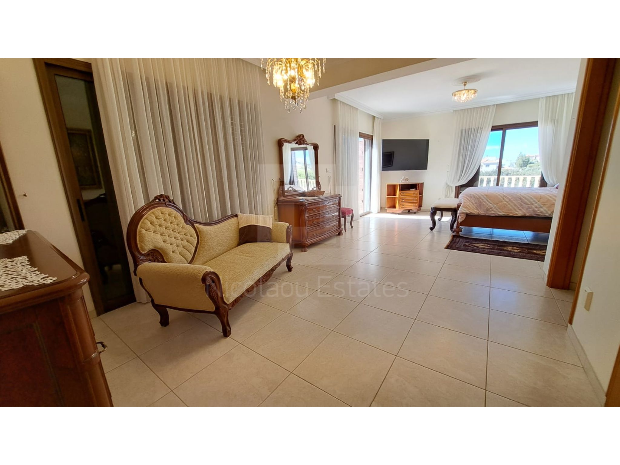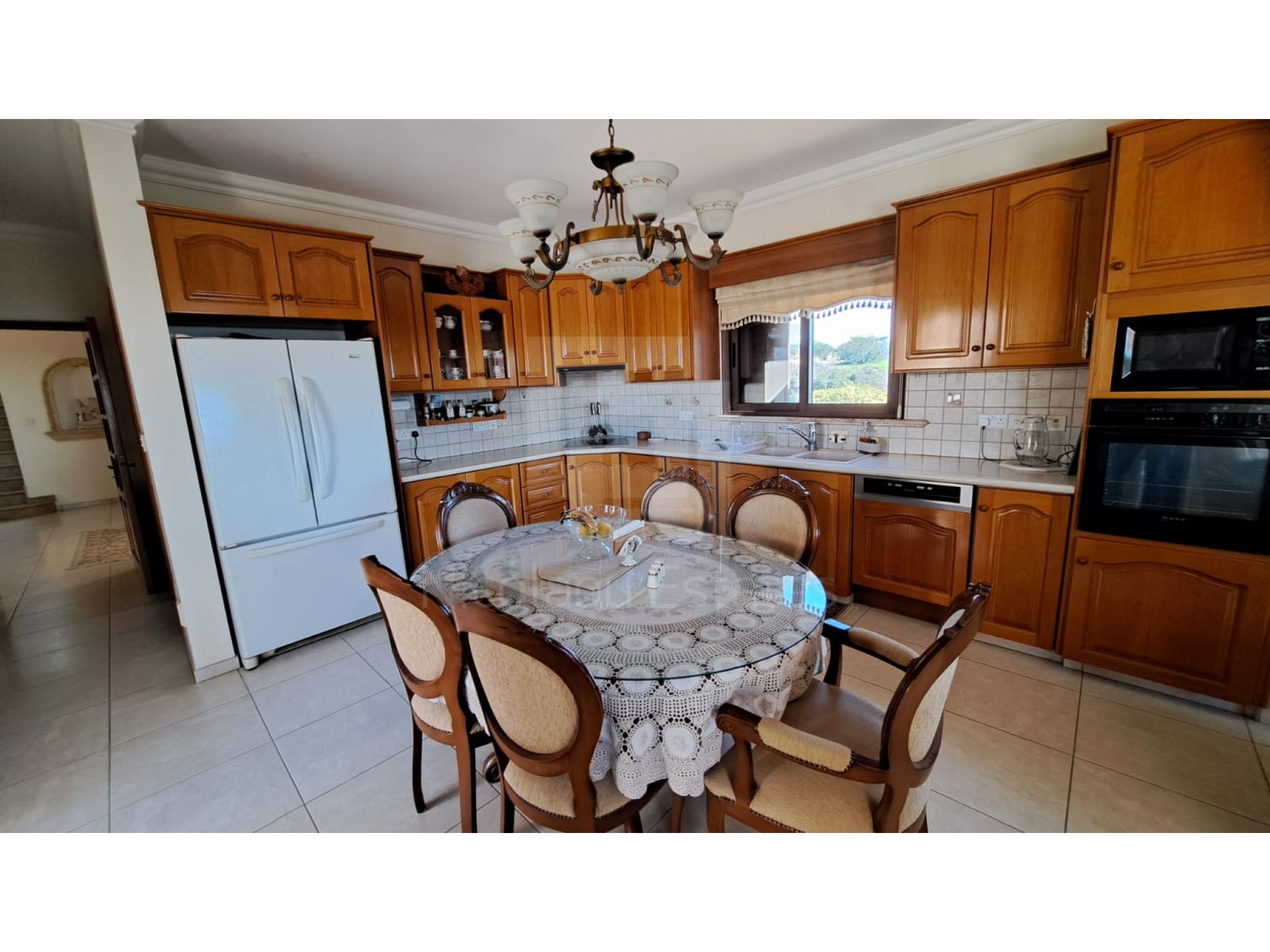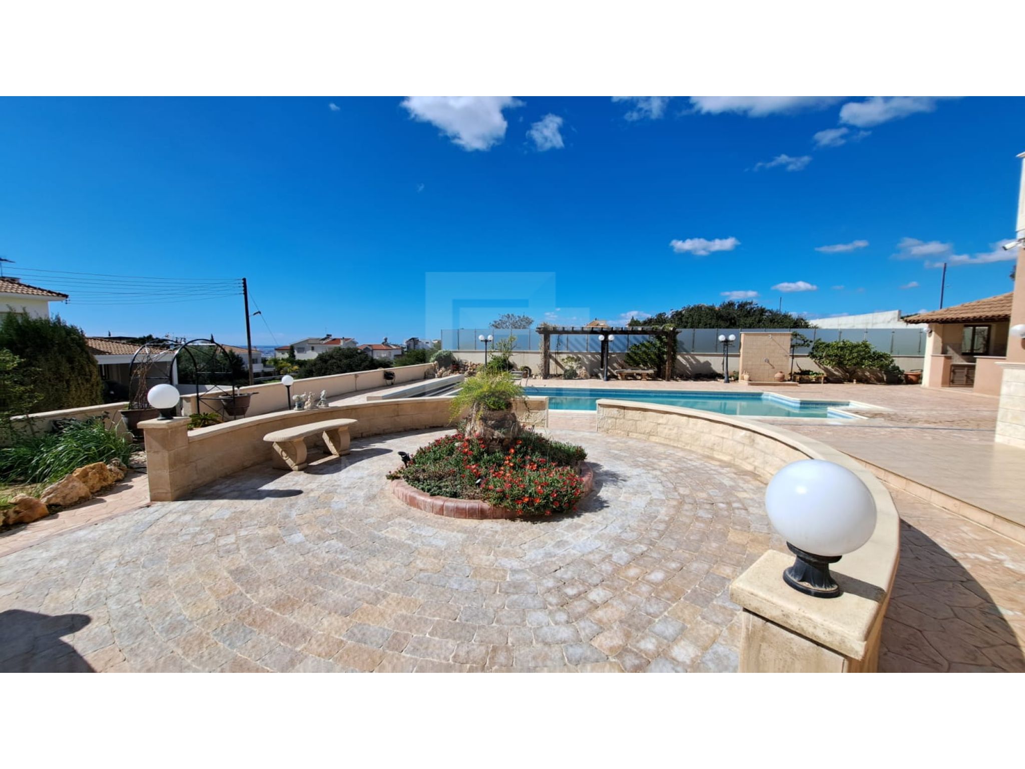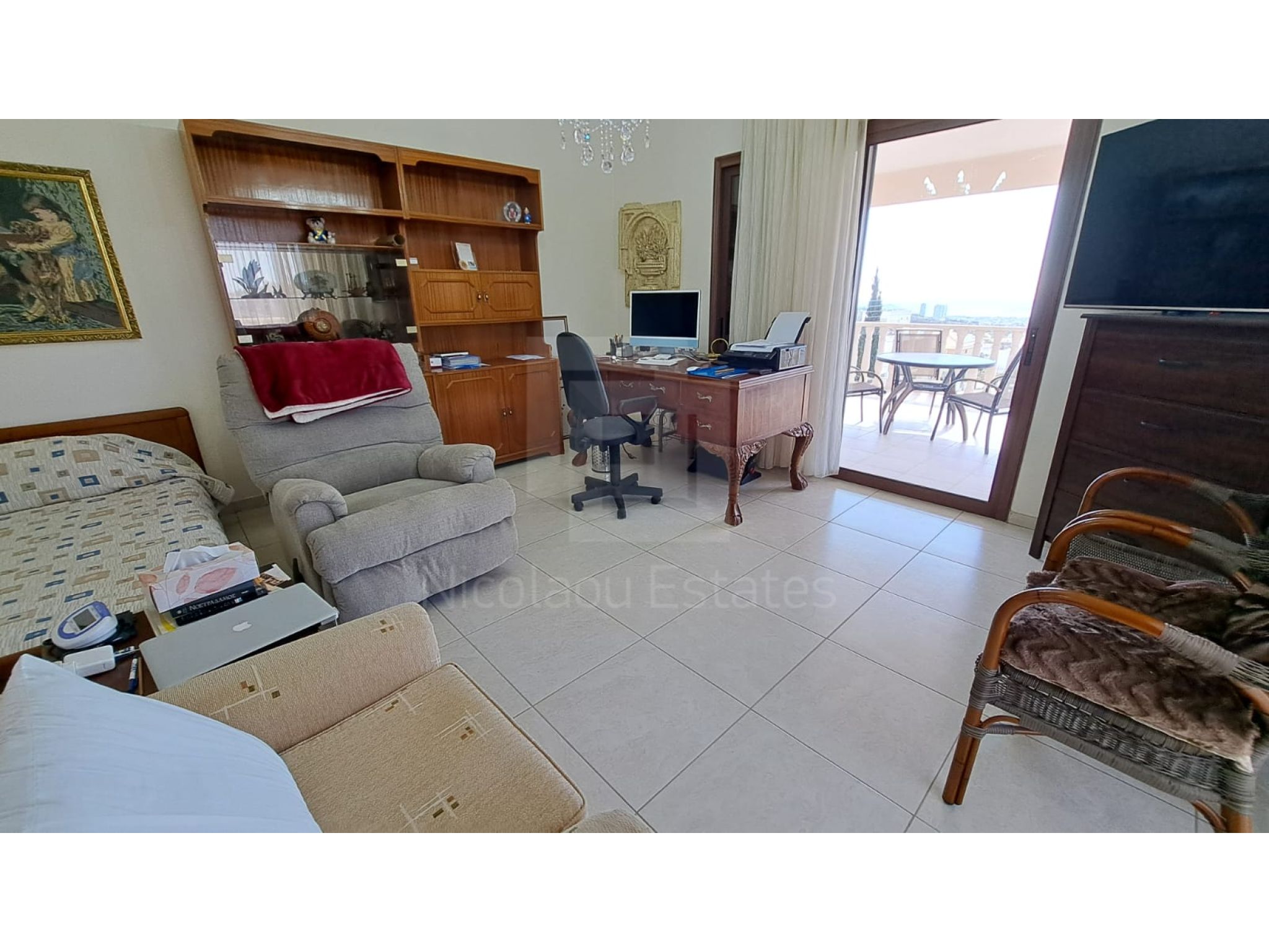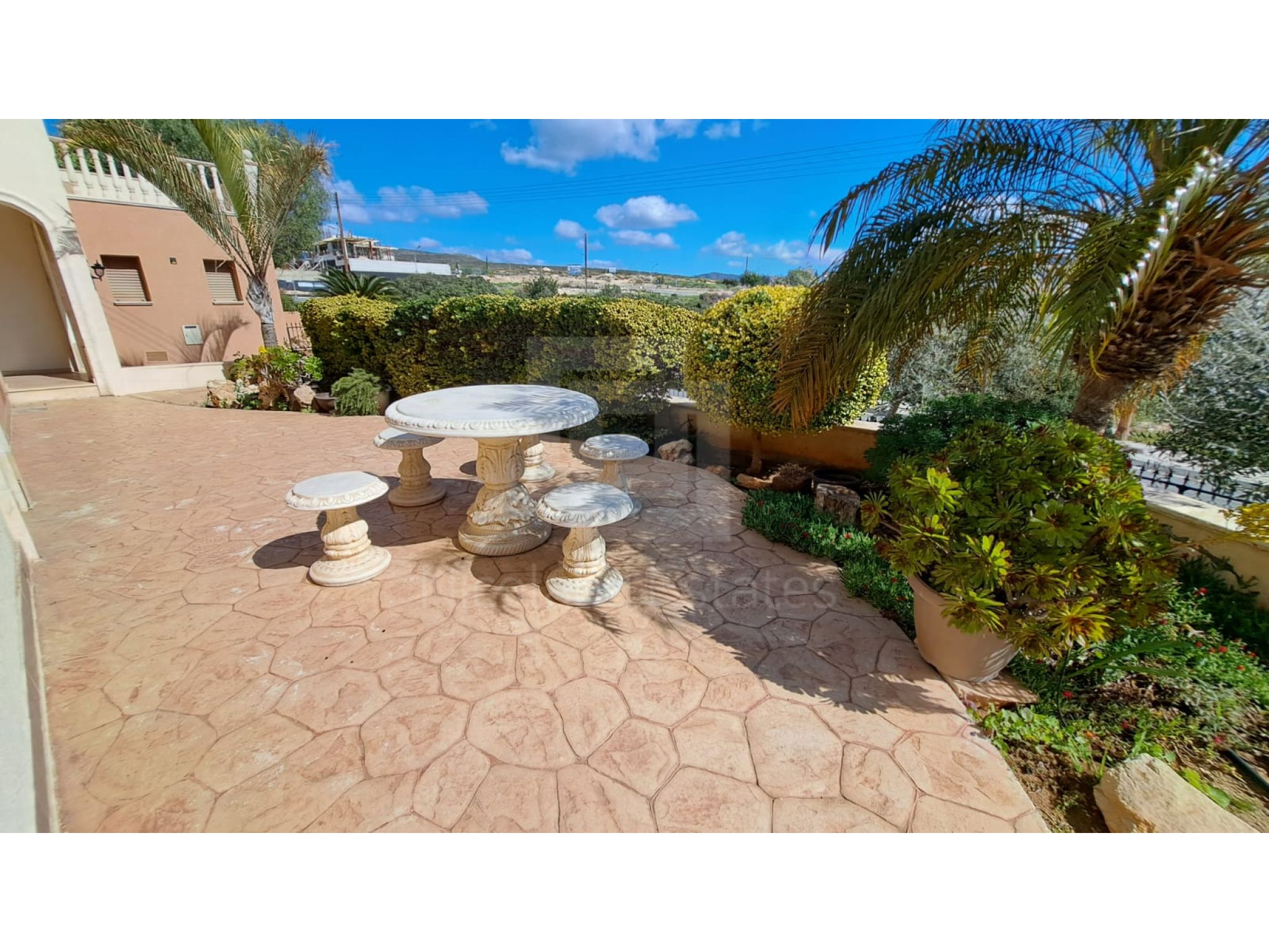 The outside space is truly spectacular with mature olive and fruit trees on the property perimeter,a large pool and a lovely BBQ Kiosk/kitchen for those pool parties all areas offering stunning sea views.