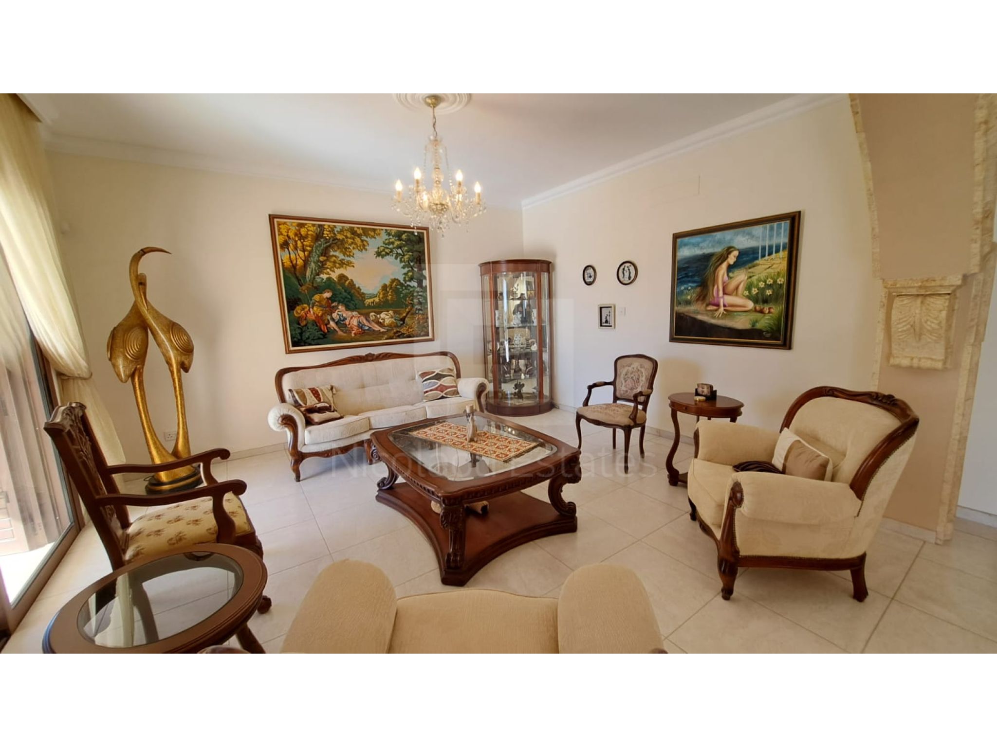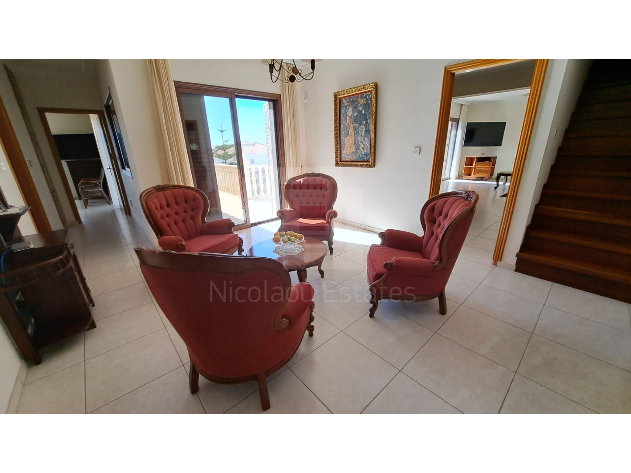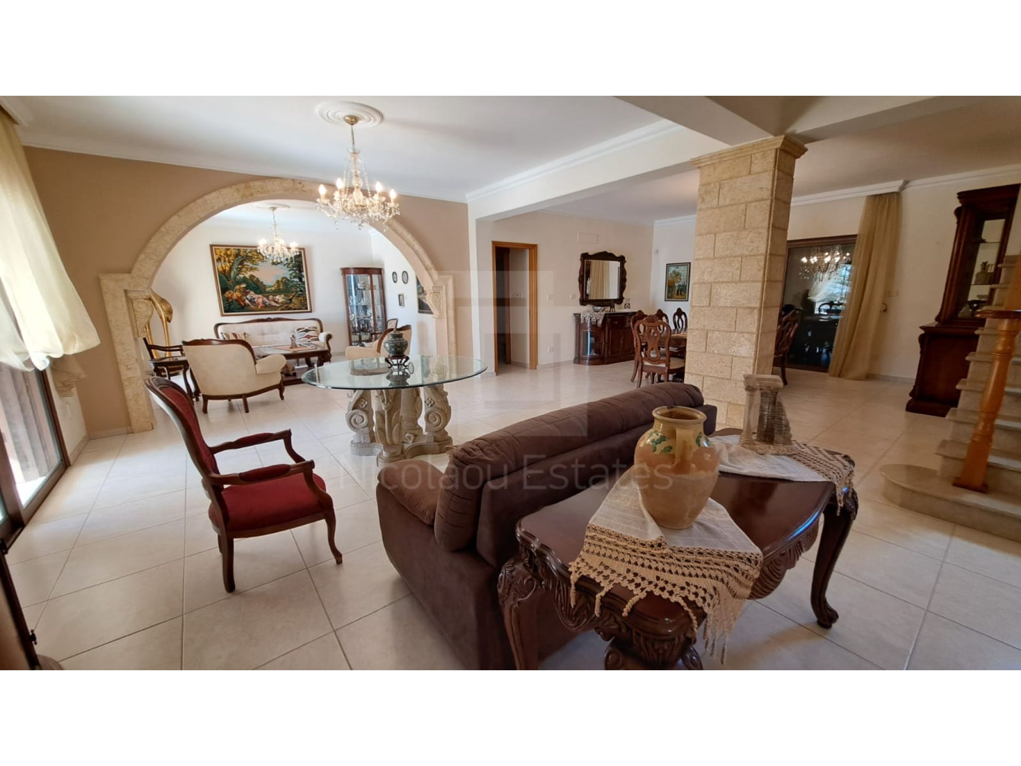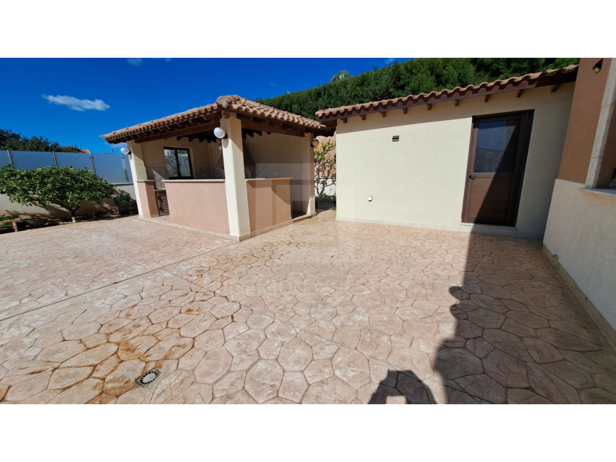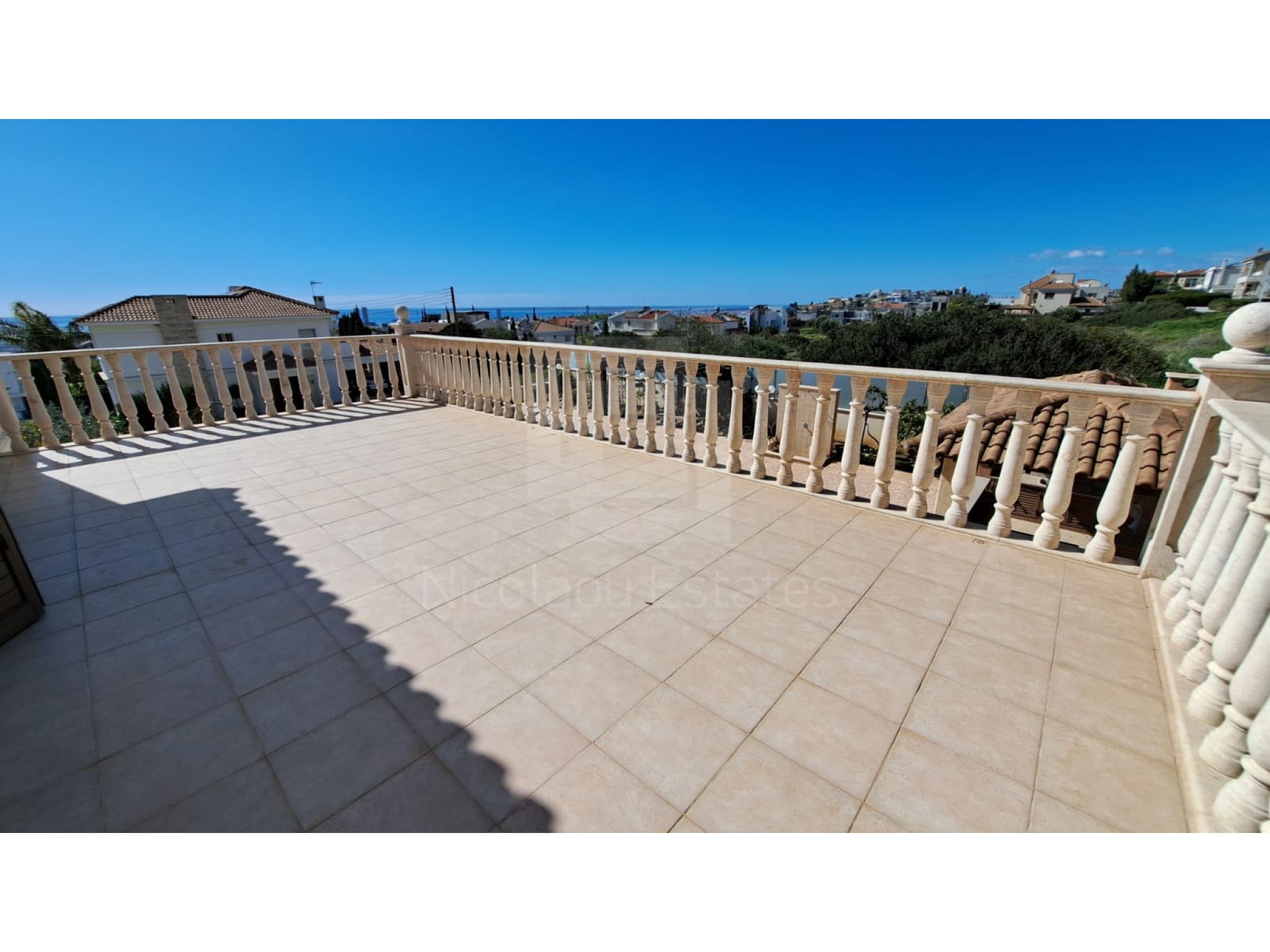 The outside space is truly spectacular with mature olive and fruit trees on the property perimeter,a large pool and a lovely BBQ Kiosk/kitchen for those pool parties all areas offering stunning sea views.