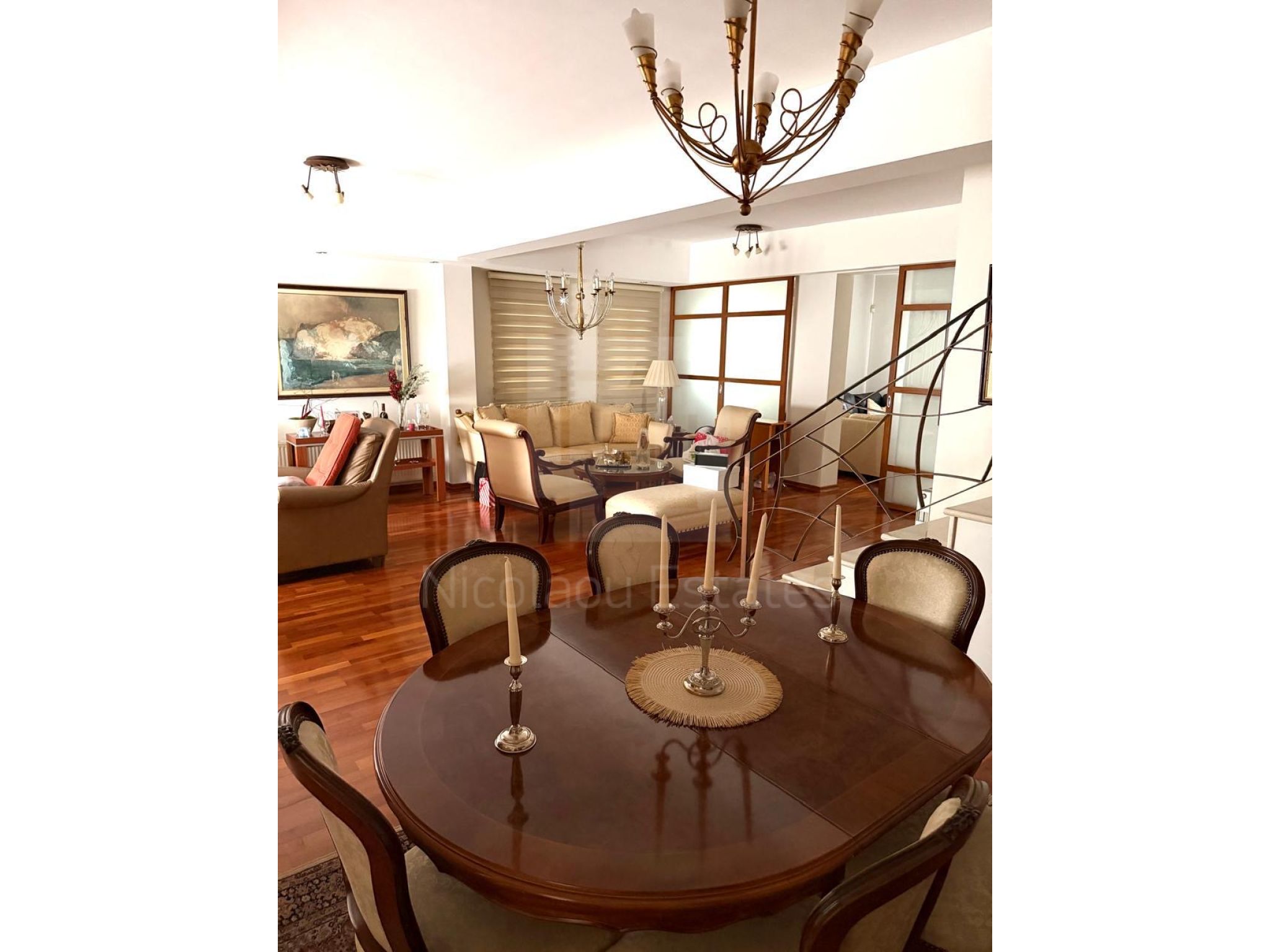 It consists of a spacious living room , with a dining area, a seperate kitchen with an informal sitting area. And a guests WC in the ground floor as well.