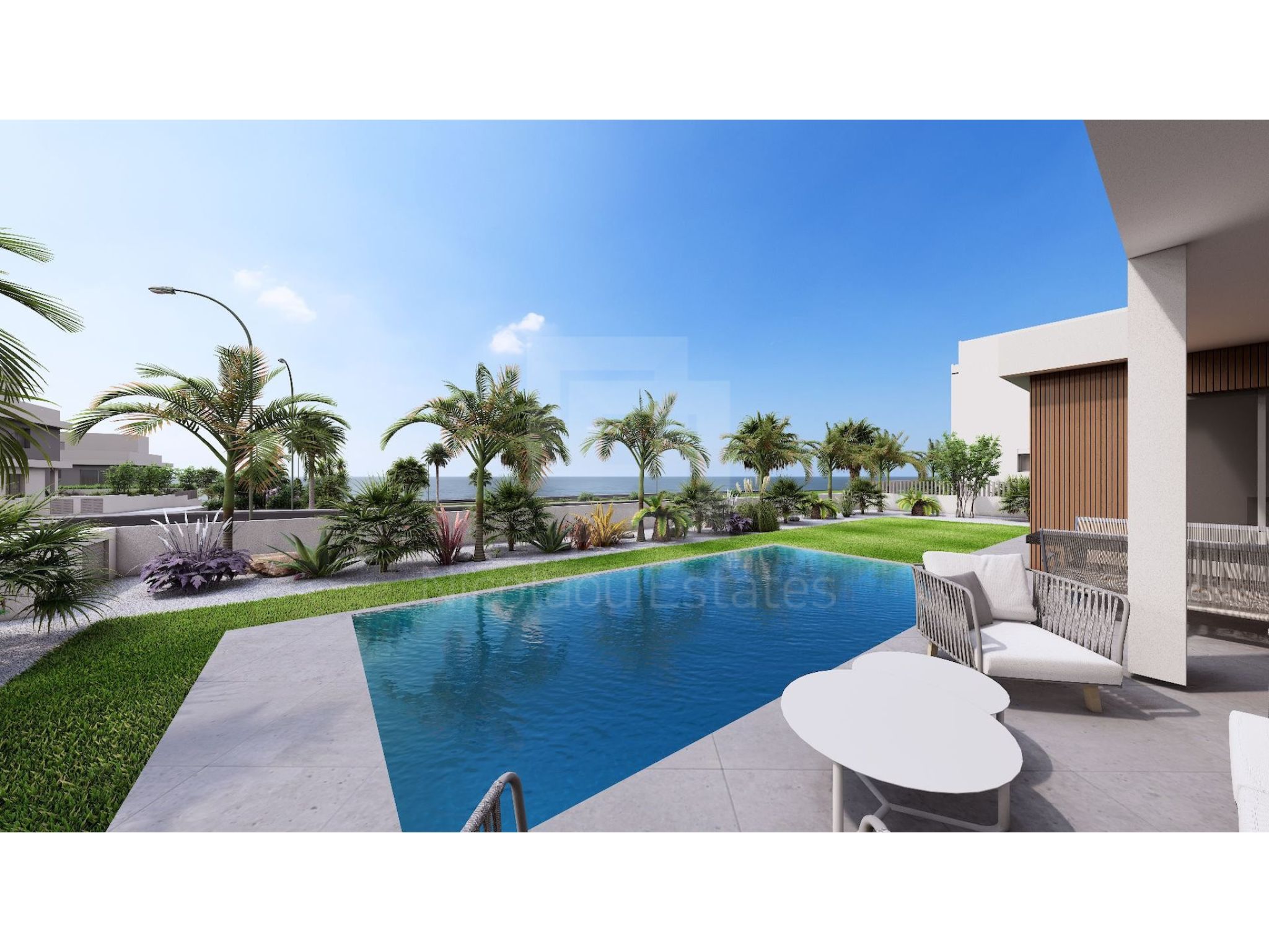 This 2-bedroom semi-detached house in Zygi, Larnaka is being offered for sale at EUR 458.000 (VAT not included).