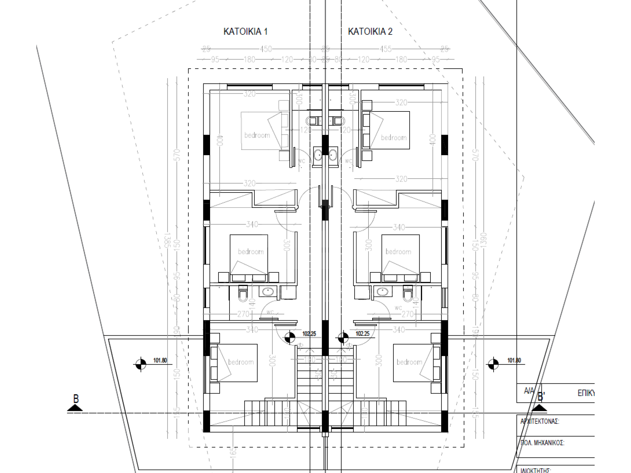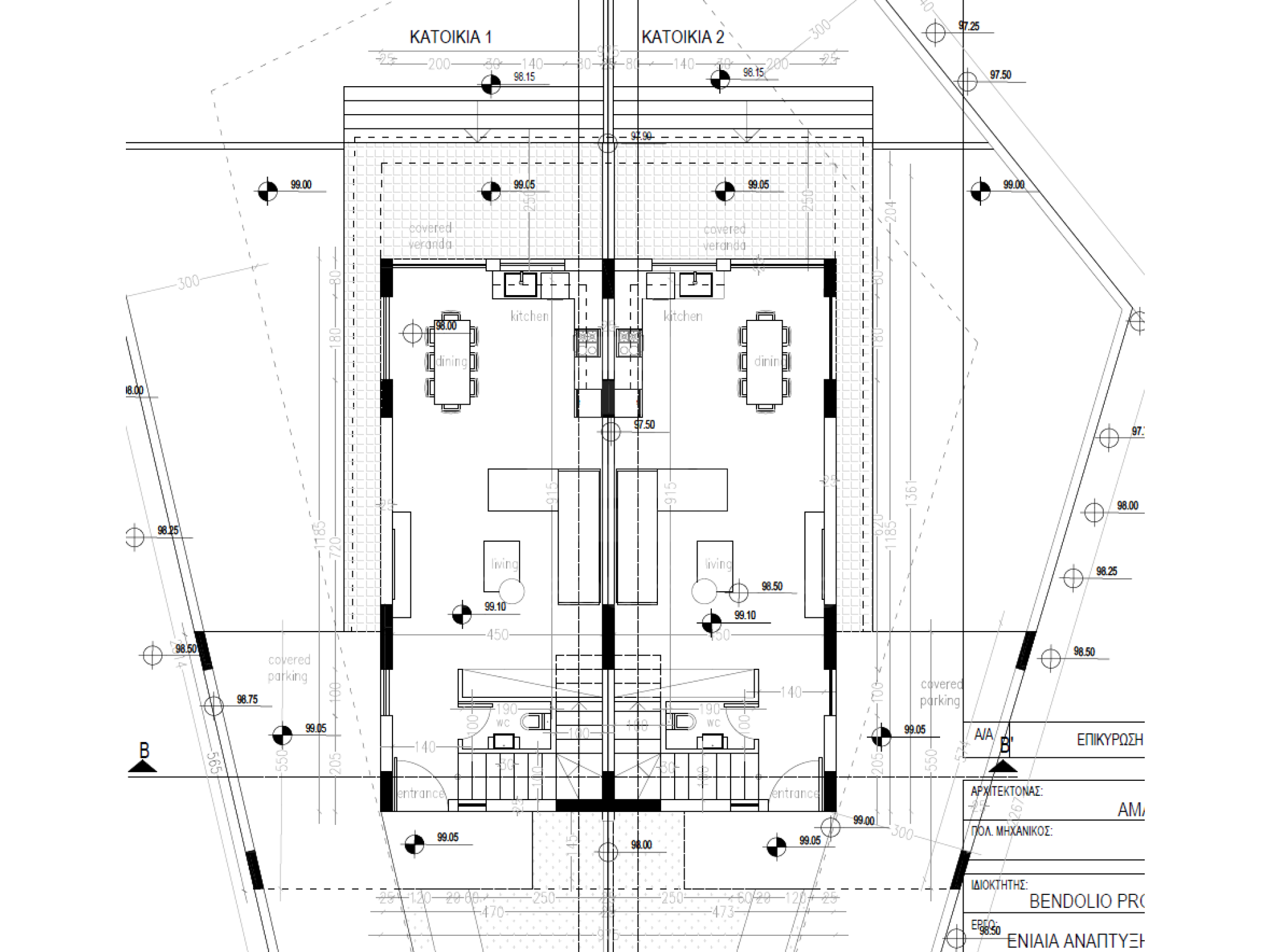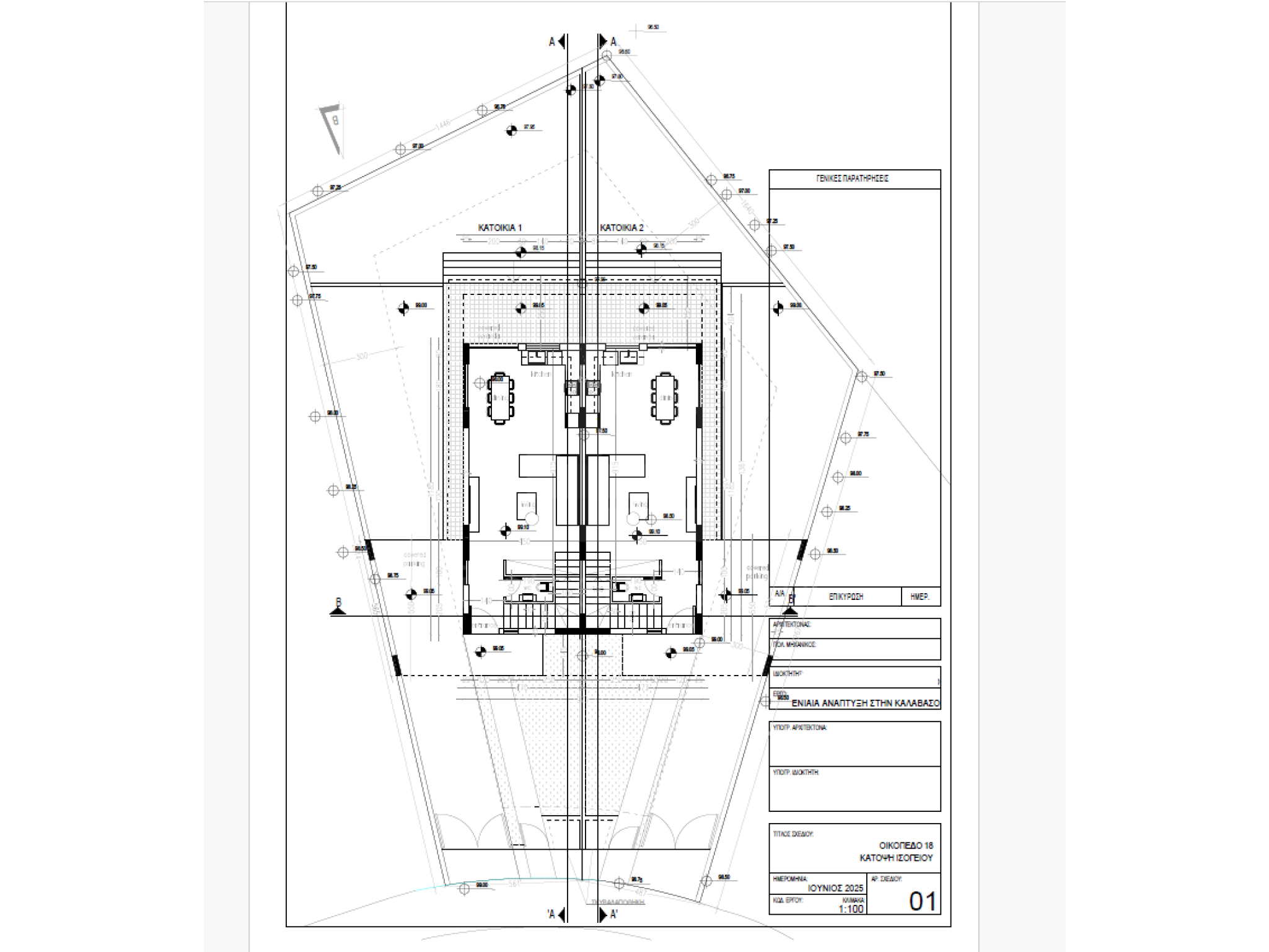 House 1: Plot 275m2, ground floor 57.72m2, 1st floor 67.76m2, covered veranda 23.26m2, uncovered veranda 2.10m2, covered car port 18.79m2. Price 285000 euro plus VAT