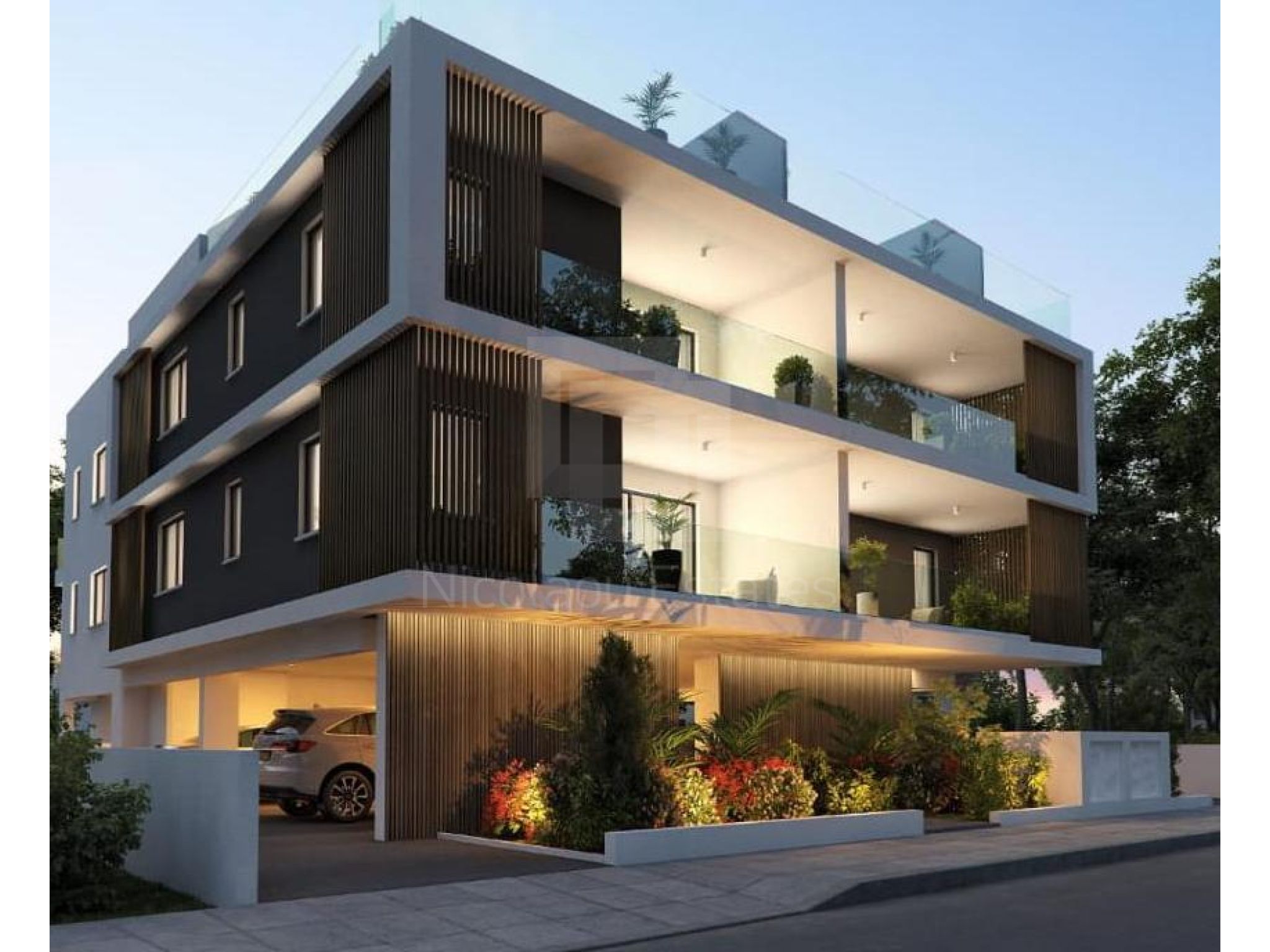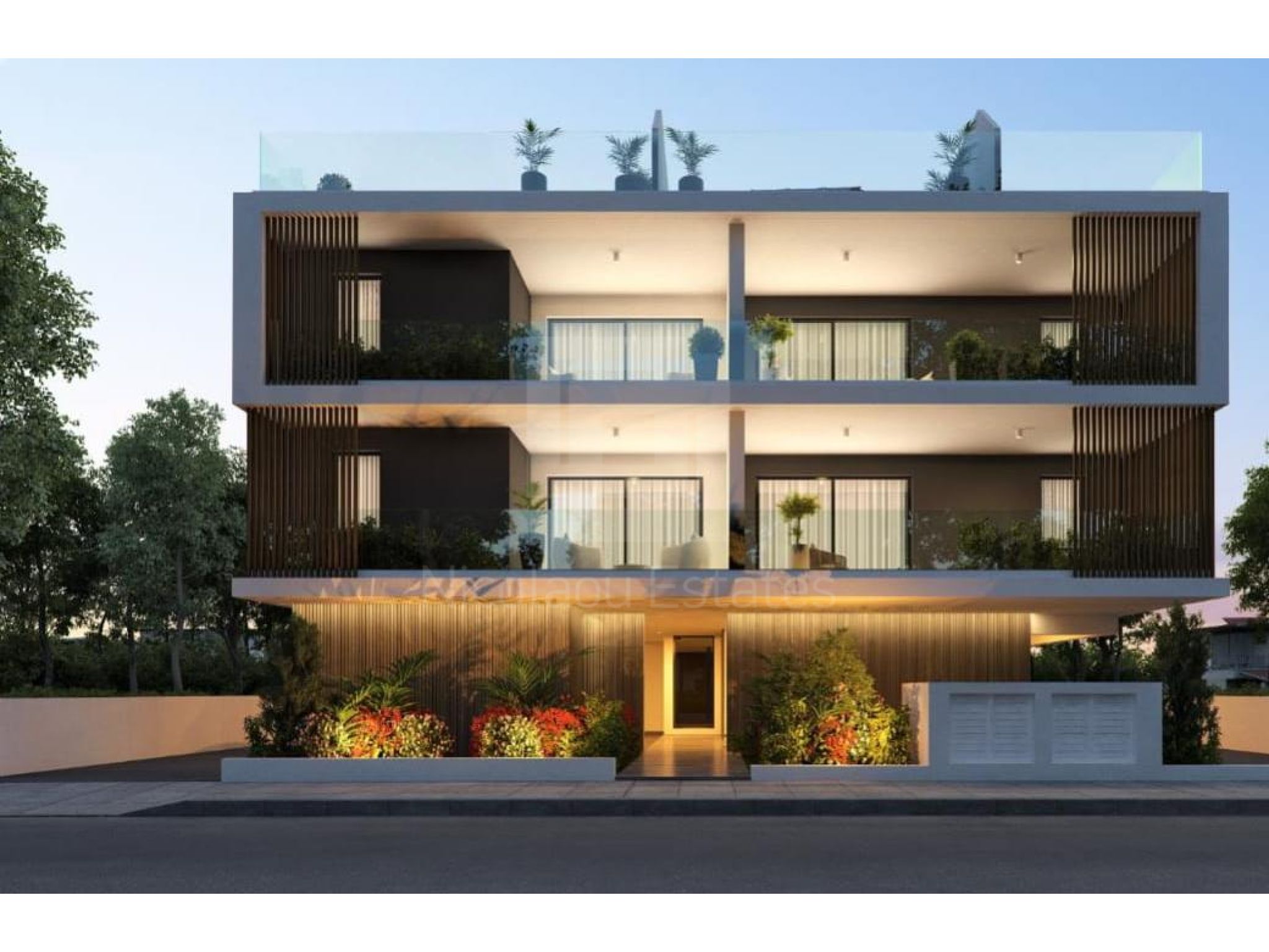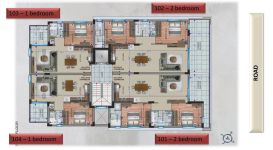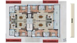 Διαμέρισμα 201 (245.000 συν ΦΠΑ): 2 συν 1 υπνοδωμάτια, 2 μπάνια, 80τμ εσωτερικός χώρος, 13τμ καλυμμένη βεράντα, 55τμ roof garden, αποθήκη και καλυμμένος χώρος στάθμευσης