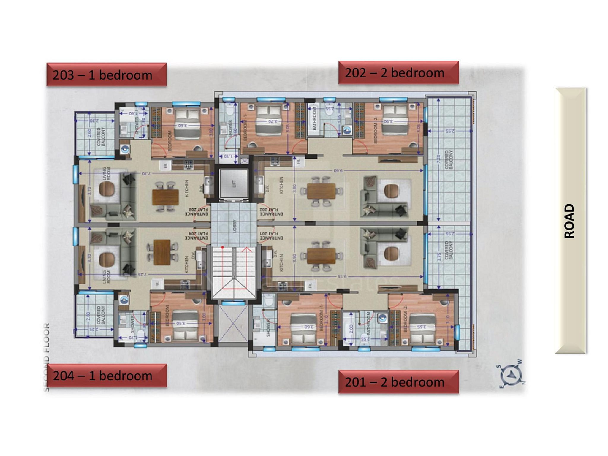 Τα διαμερίσματα βρίσκονται στον 2ο όροφο και προσφέρουν σύγχρονο σχεδιασμό, άνετους χώρους και υψηλής ποιότητας φινιρίσματα, εξασφαλίζοντας άνετη και ποιοτική διαβίωση.