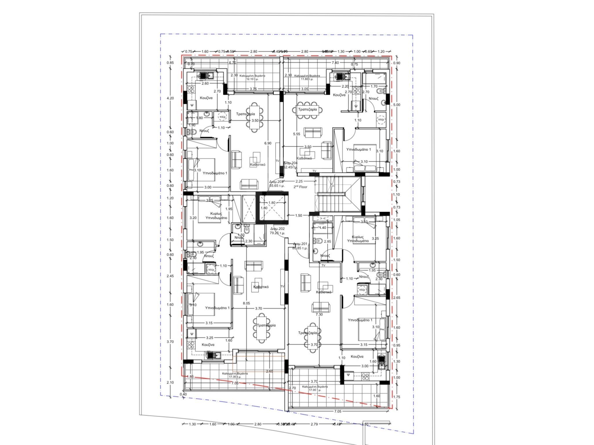 Διαμέρισμα 201 (215.000 συν ΦΠΑ): 2 υπνοδωμάτια, 2 μπάνια, 80.9τμ εσωτερικός χώρος, 17τμ καλυμμένη βεράντα, 78τμ roof garden, ιδιωτική αποθήκη και καλυμμένος χώρος στάθμευσης.
