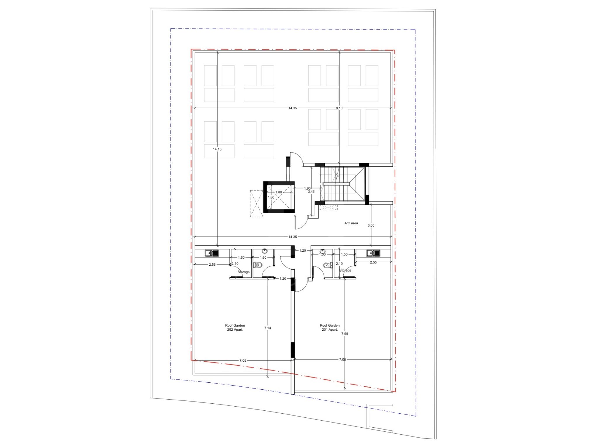 Apartment 201 (215,000 plus VAT): 2 bedrooms, 2 bathrooms, 80.9m2 of interior space, 17m2 of covered veranda, 78m2 of roof garden, private storage room and covered parking space.