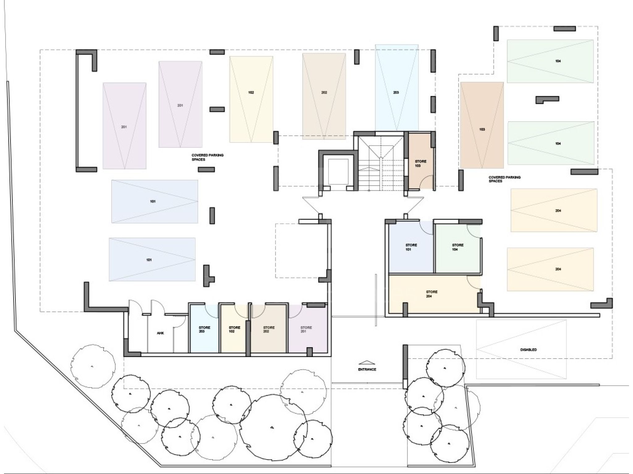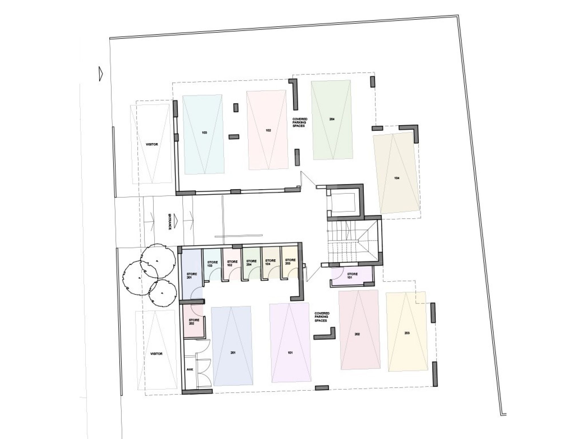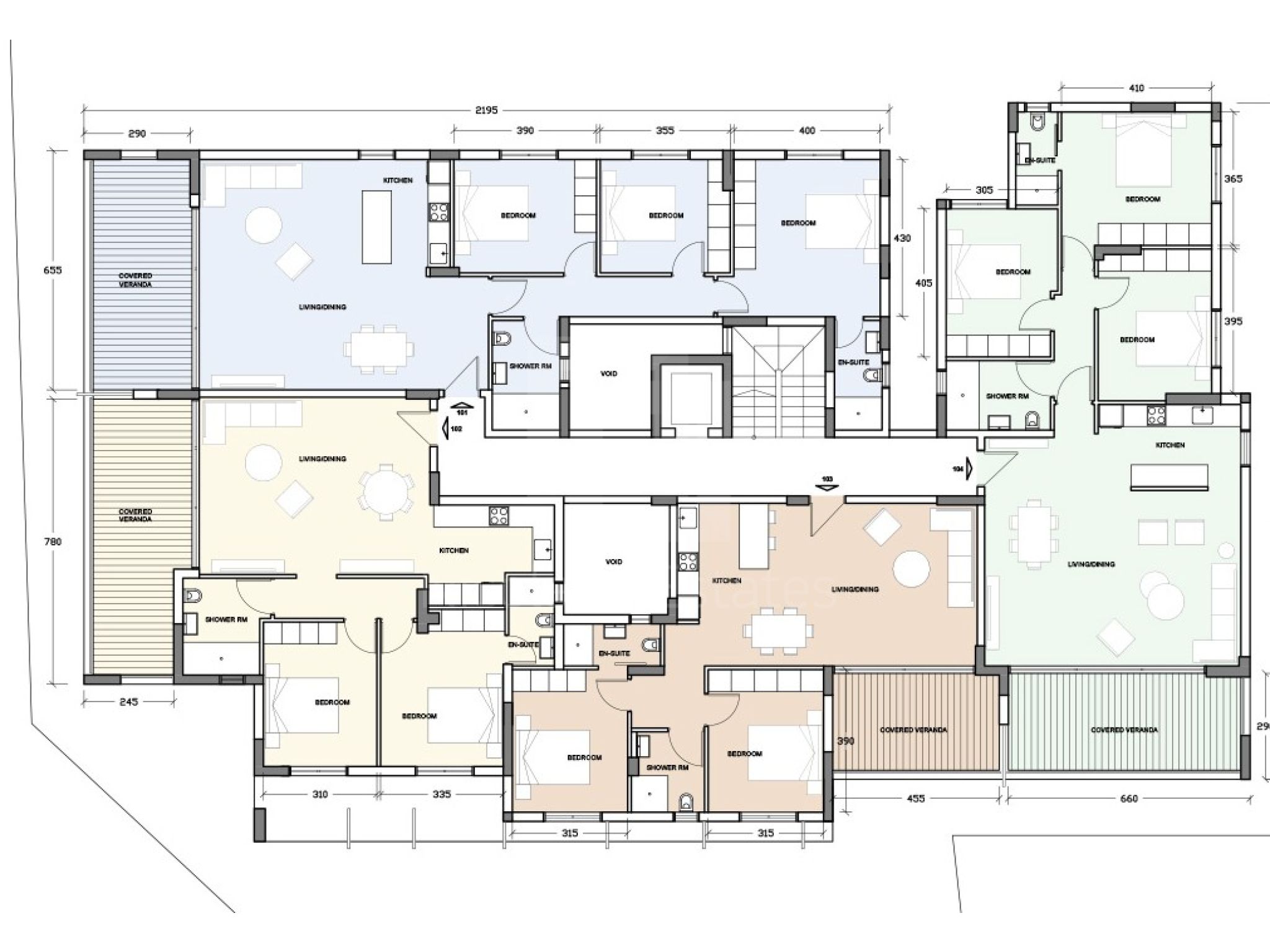 Η ανάπτυξη αποτελείται από 2 κτίρια, ένα κτίριο διαμερισμάτων 1 και 2 υπνοδωματίων και ένα άλλο κτίριο διαμερισμάτων 2 και 3 υπνοδωματίων με ιδιωτικές ταράτσες για τα διαμερίσματα του τελευταίου ορόφου.