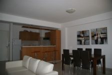 The apartment is fully furnished with a fridge, an oven, a hob and extractor, a washing machine, a toaster, and a water boiler. All rooms and bedrooms are fully air-conditioned. In the dining area there is a dining table with 6 chairs. The living room has two three-sitter sofas, a coffee table, a side table, a T.V furniture and a 32' television. The master bedroom is furnished with a queen bed and nightstands. The spare room is furnished with two single beds and a night stand. The veranda has a dining table with 4 chairs.