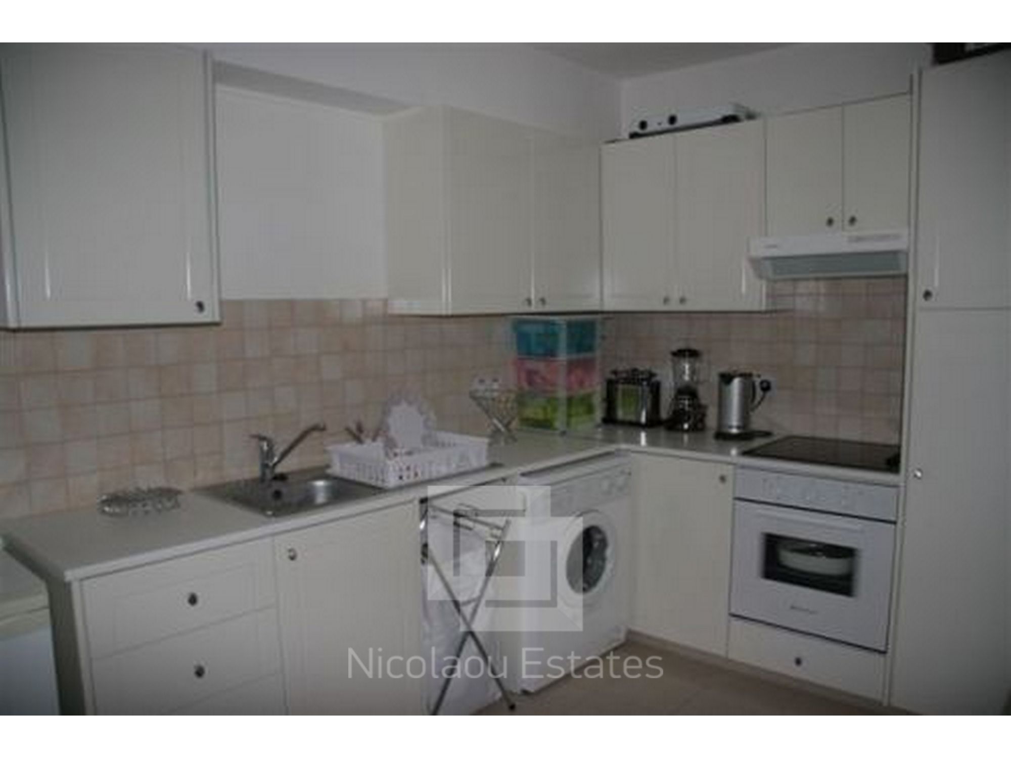 There is an open plan kitchen with plenty of cabinets. It is fully furnished with a fridge, an oven, a hob and extractor, a washing machine, a toaster and a water boiler. In the living room area there is a 32? television. All rooms and bedrooms are fully air-conditioned.