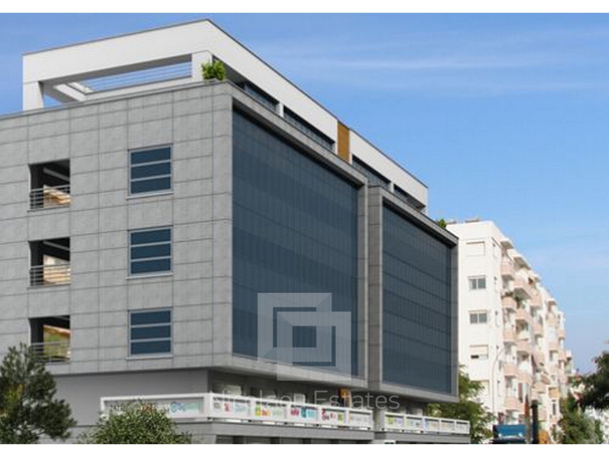 It consists of 8 shops on the ground floor with mezzanine levels and 7 offices on four floors. There are 2 offices on each floor, from 1st until 3rd floor, and one large office on the top floor. All offices have an open plan space, large verandas, kitchenette room and two WCs.