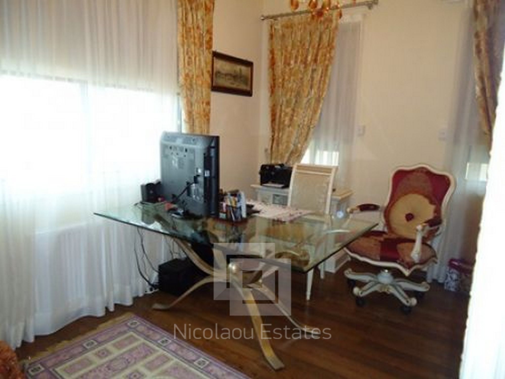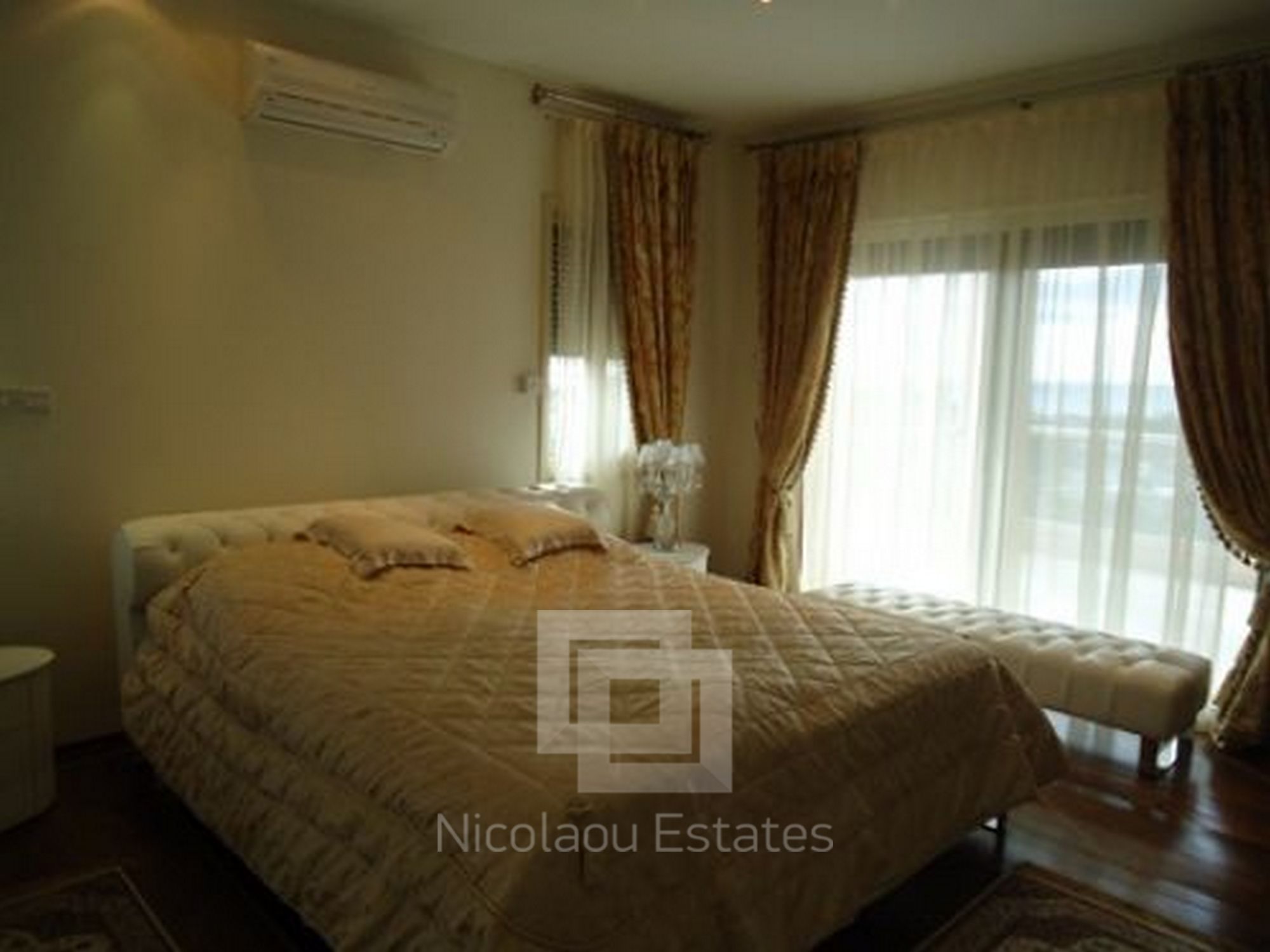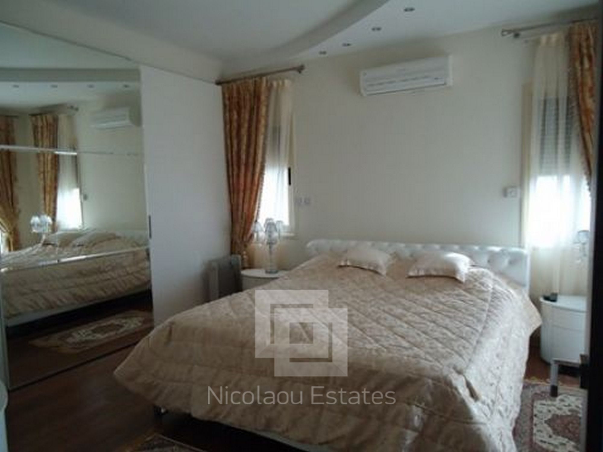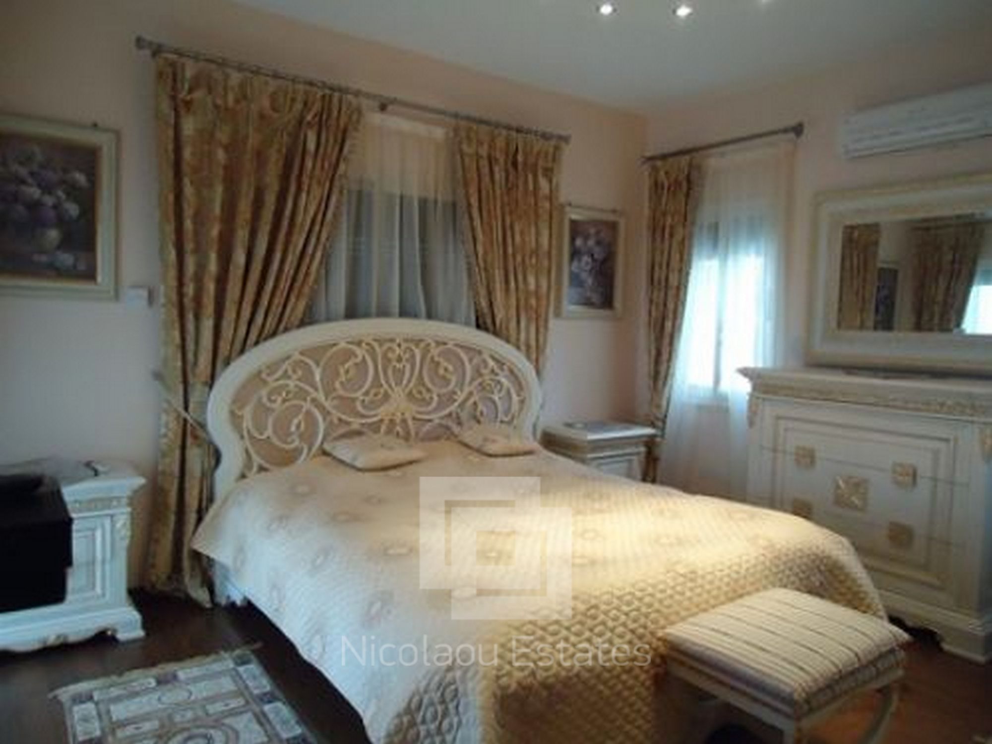 Large stunning classical villa situated in the area of Limassol - Mutayaka, with direct views of the sea and the mountains. Features: 4 bedrooms two with shower, 2 guest toilets, spacious living room, walk in room, separate kitchen, secure covered parking, a barbecue area, patio. The villa has a beautiful landscaped garden, swimming pool. Features: built-in wardrobes, wooden flooring in bedrooms luxurious designer furniture (fully furnished). Central heating (gas), solar panels. Cameras around the building ONLINE archive records via internet & night vision mode on a hard drive.