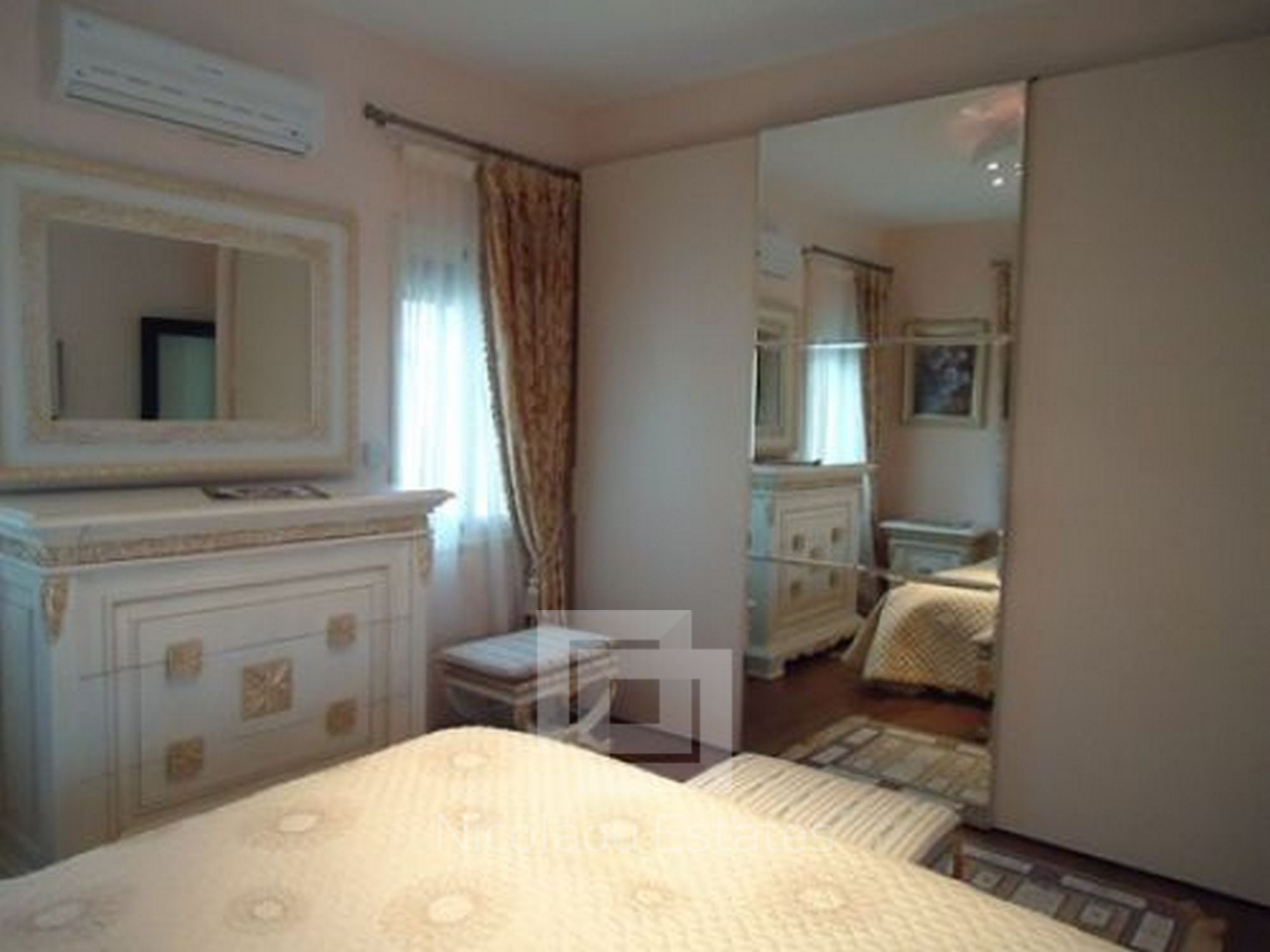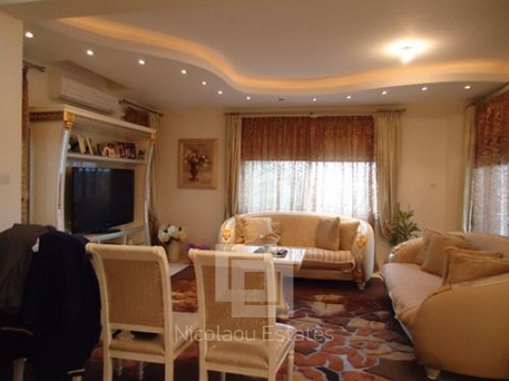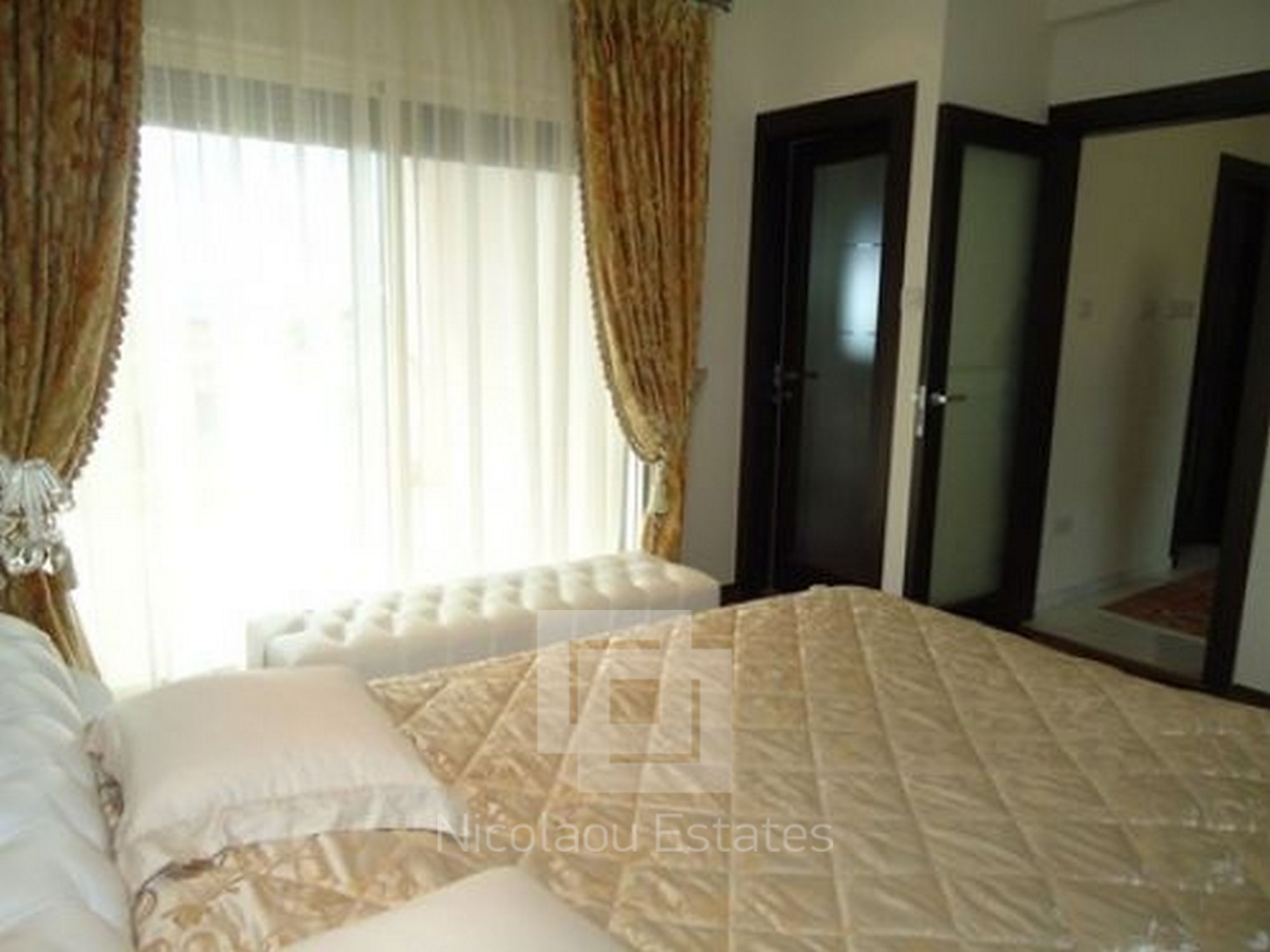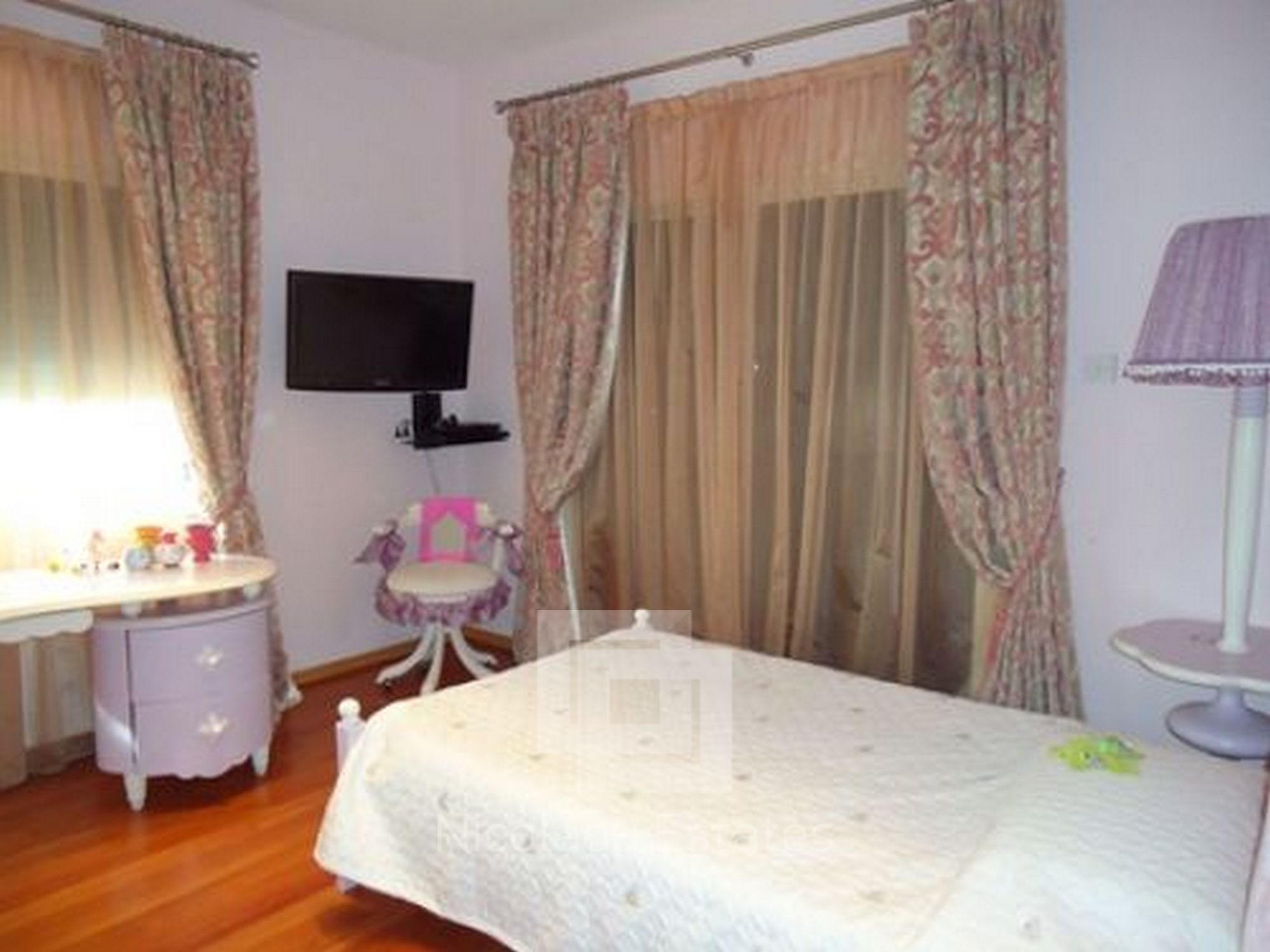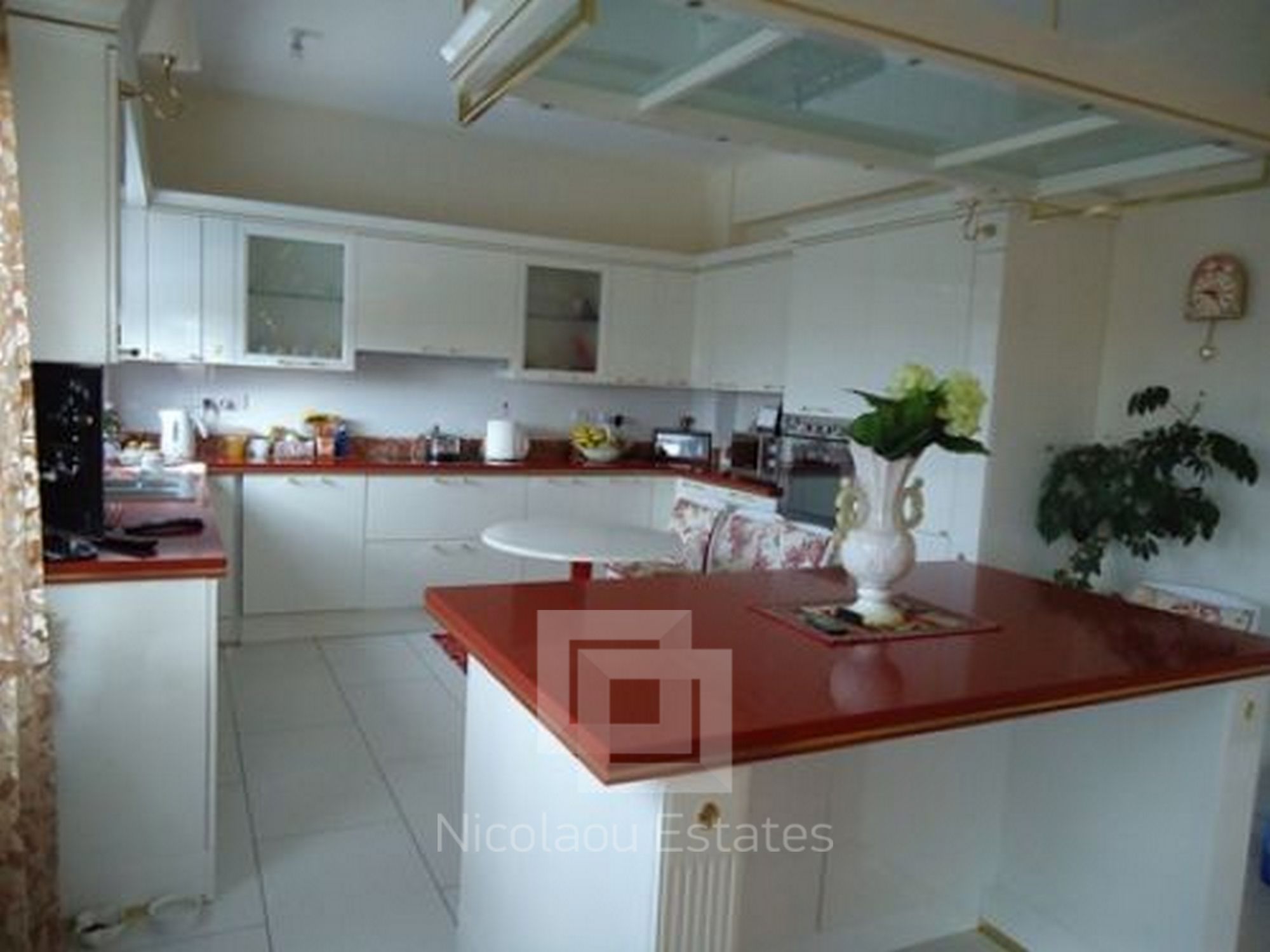 Large stunning classical villa situated in the area of Limassol - Mutayaka, with direct views of the sea and the mountains. Features: 4 bedrooms two with shower, 2 guest toilets, spacious living room, walk in room, separate kitchen, secure covered parking, a barbecue area, patio. The villa has a beautiful landscaped garden, swimming pool. Features: built-in wardrobes, wooden flooring in bedrooms luxurious designer furniture (fully furnished). Central heating (gas), solar panels. Cameras around the building ONLINE archive records via internet & night vision mode on a hard drive.