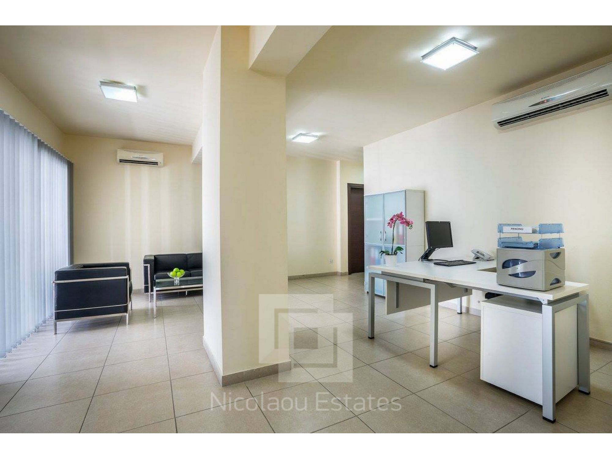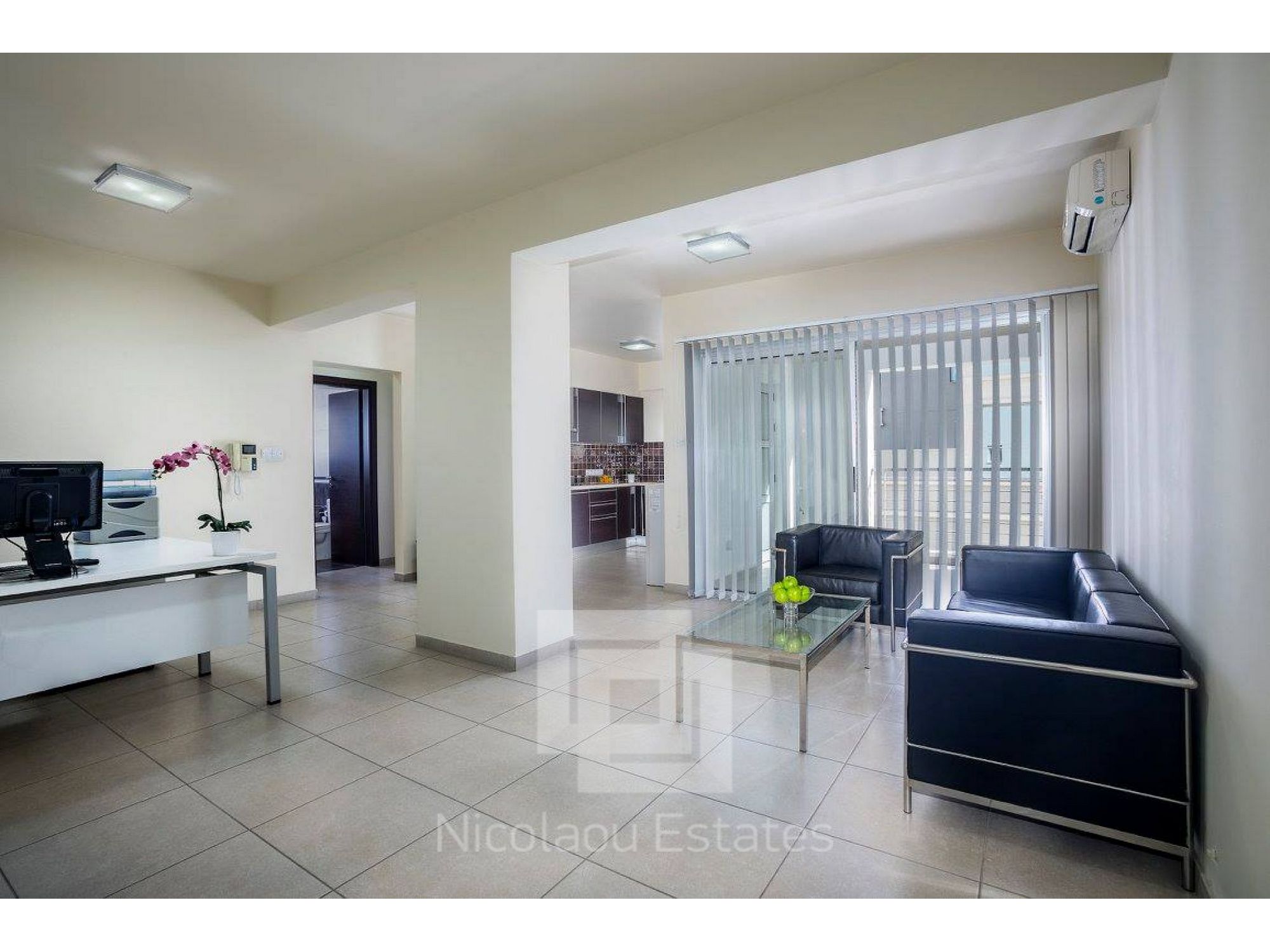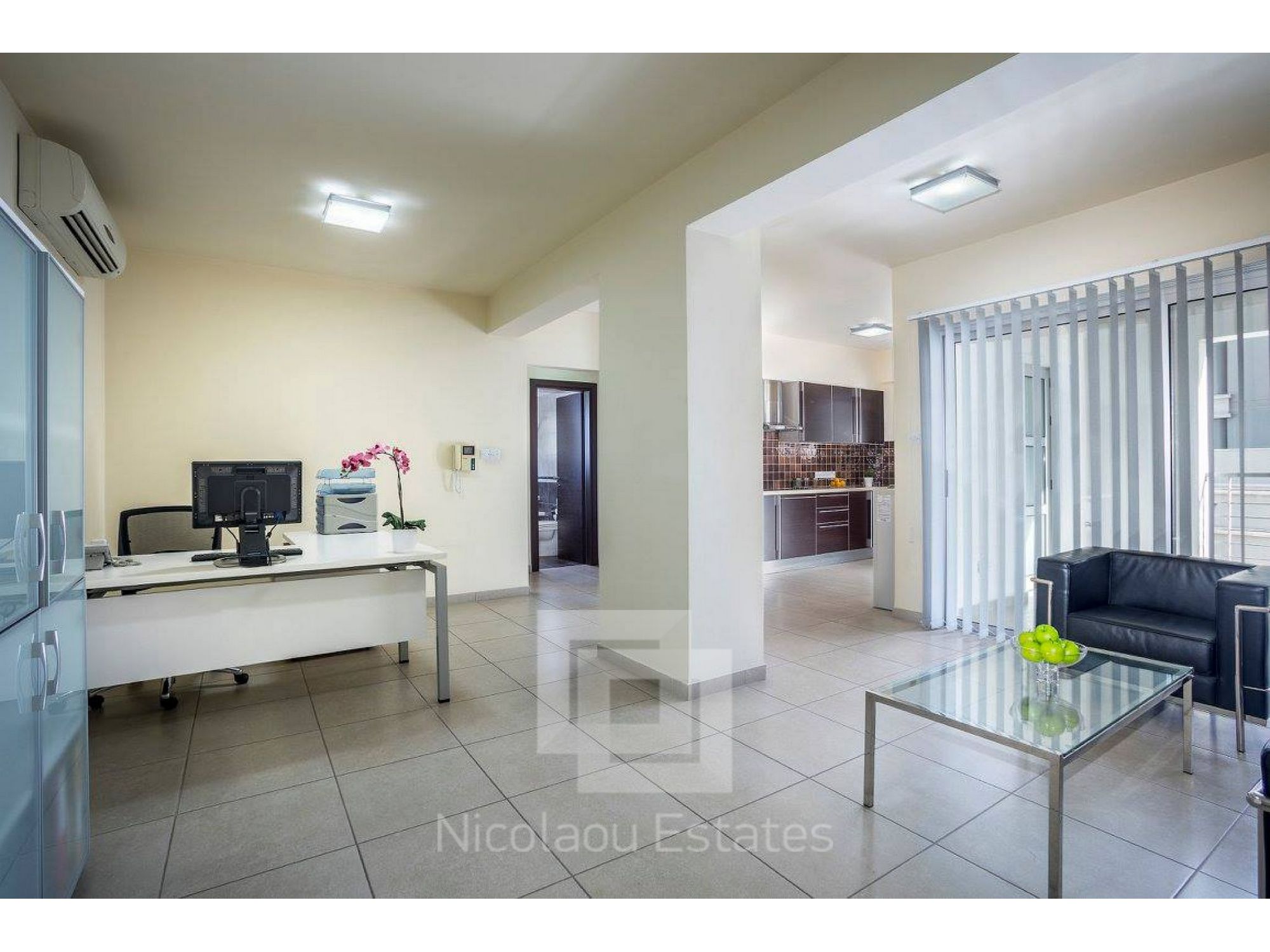 The apartment-office is in an excellent condition and it consists of 2 W/C, a bath with hydro-massage, a/c units, blinds, entrance door with additional defense, Italian fitted kitchen & wardrobes and it is partially furnished by office furniture. It is suitable for residence or office. The premises can be easy split up to 4 separate offices for international business companies’ use.
