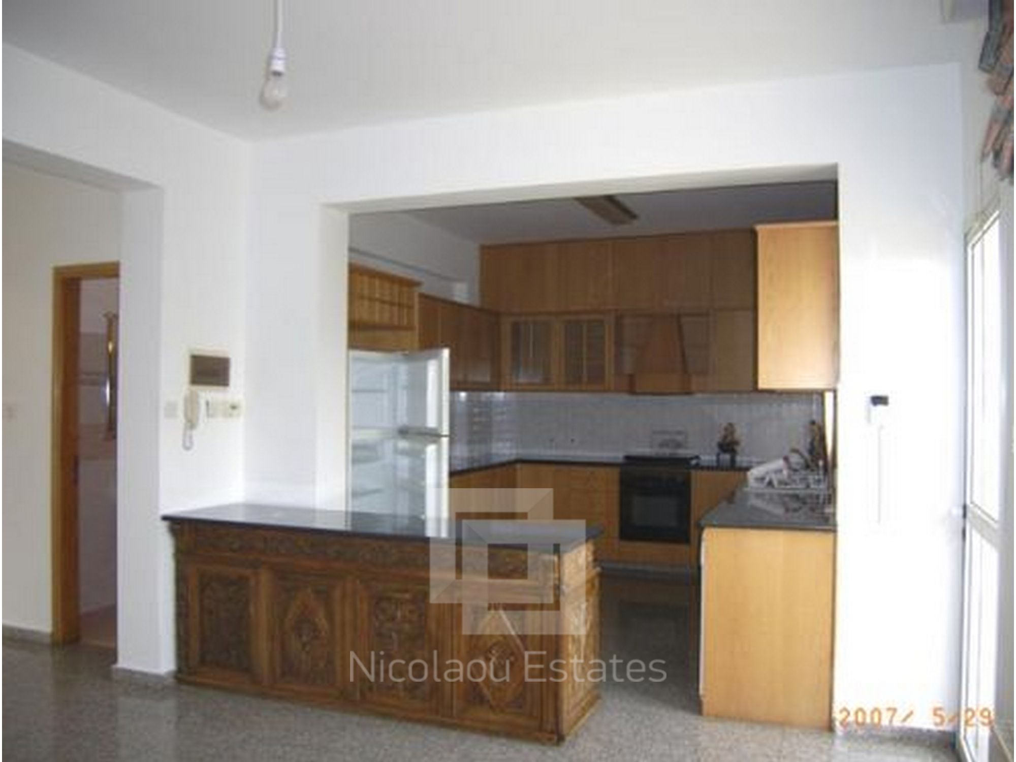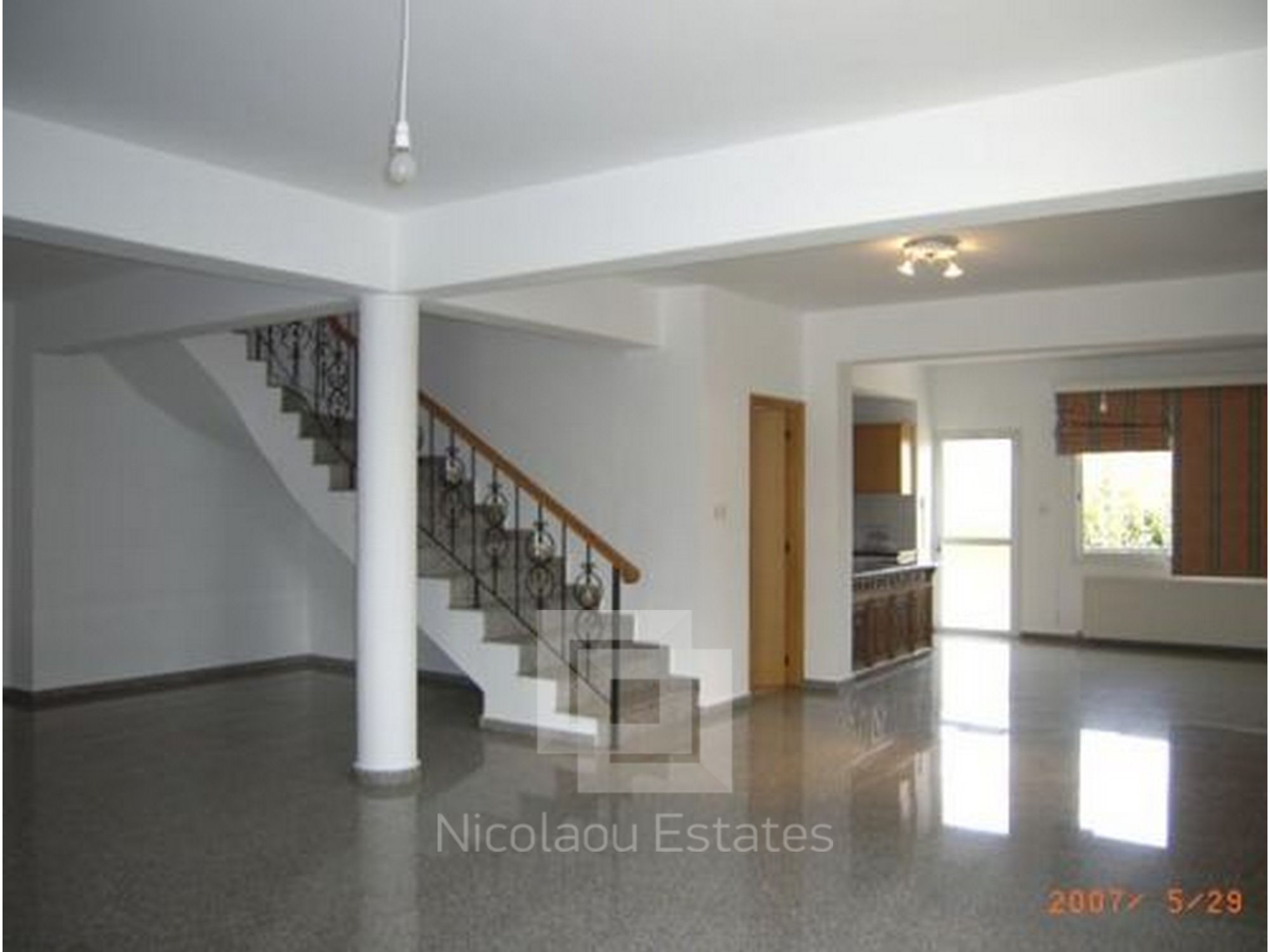 A beautiful detached 4 bedroom house located in the residential area of Agios Athanasios. House comprises very spacious open plan dinning/lounge area, semi separate kitchen with granite worktops,with door leading to the back veranda and garden area and a guest toilet. Lovely granite staircase leads to a landing with family bathroom, 4 bedrooms and a small kitchenette. Master bedroom is en-suite and has a small mezzanine floor. Parquet flooring was used on top floor. Air-condition and central heating throughout, alarm system, drive way with one covered and one uncovered parking. House is only 7 years old and has Title Deeeds.